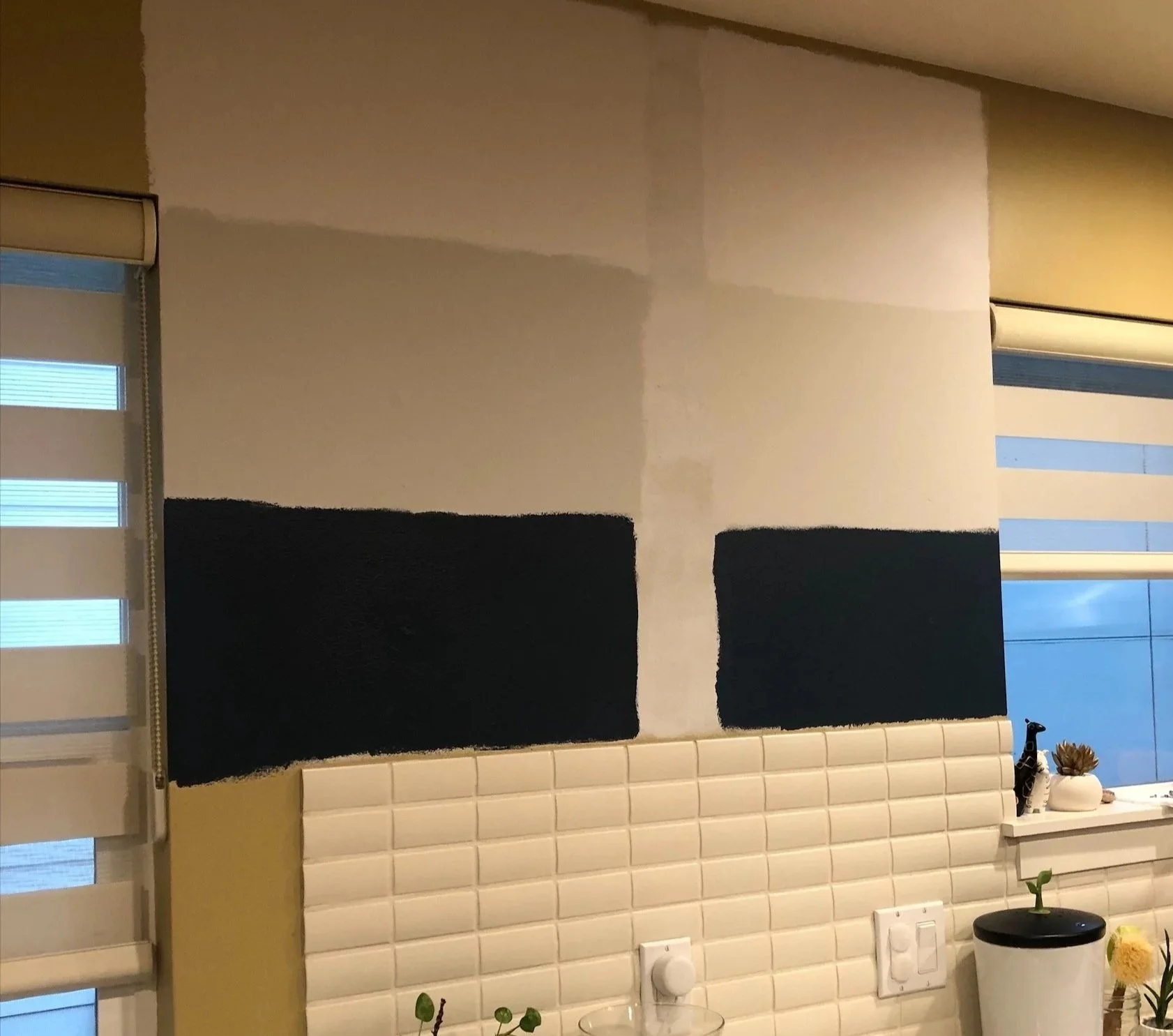 I always recommend painting test samples directly in the space because once they’re on the wall, the true undertone becomes much more apparent.